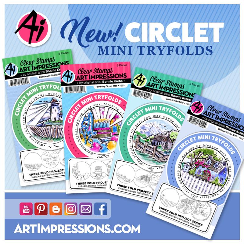We are celebrating the new release of our Circlet Mini TryFolds, an extension of our popular three-panel revealing line! These images are designed to work beautifully layered together! Last week, Diane gave a great tutorial for a flip card by layering the images, be sure to check it out if you missed it. Let's take a look at more inspiration from our designers! You can find more information about each card by clicking the designer's name, hopping over to their blog. Want to give them a try for yourself? They are available now at artimpressions.com!