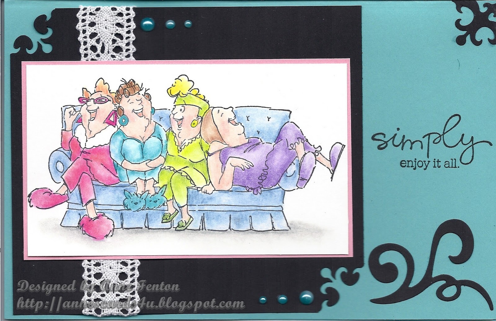 Good morning ladies...this morning I have another Girlfriend card for you...this is a front and back set, unfortunately I couldn't find the other stamp...gee guess I'll have to order a new one. I have used YY4008 from the Girlfriend Series, you can find it HERE, along with the accessories. If that was me...I'd be inside where it is warm, buying all the goodies I could!!! Don't forget to stop by Art Impressions and see all the great stamps, I know you'll fall in love with them all.
