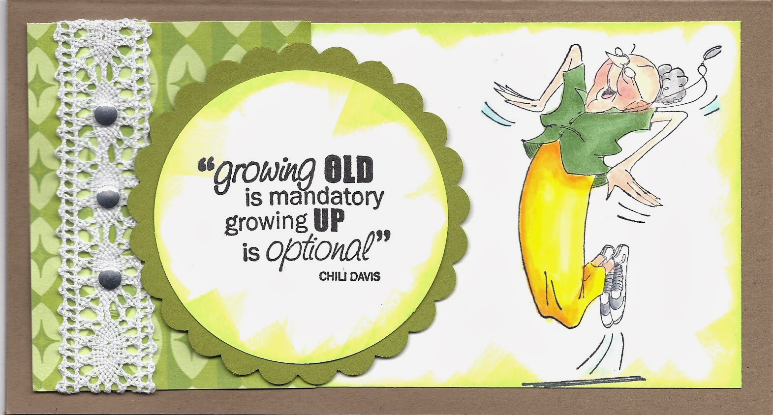 This week I have made a card using Lillie P1933. I have colored her in copics, my sentiment is from my stash and I have distressed the edges with ink. Lillie is just one of the fun images from
