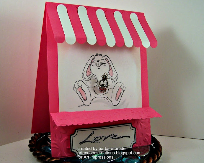 Its Barbara with my usual Wednesday post. Boy I was stumped today and really couldn't come up with anything. Then I had club meeting tonight and the project we learned really was so cute I decided to use this cute Giant Bunny as my image. Love this awning effect, too, don't you??