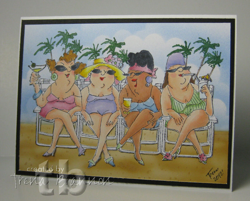 These are my kind of girls,what is better than girlfriends and fufu drinks and toes in the sand , I love this card : )