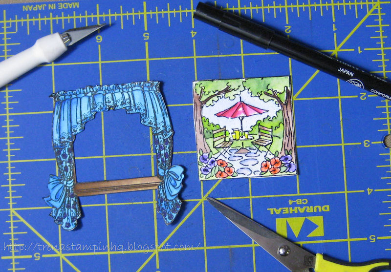 Another TIP: When I cut out images, I use a black marker to darker the edges. I just run the marker along the inside and of where I cut. I stamped a partial image on the inside and colored with markers. I used my computer to print out the sentiment.