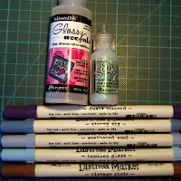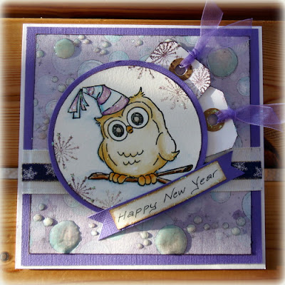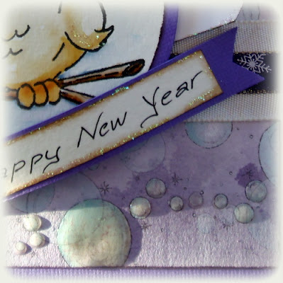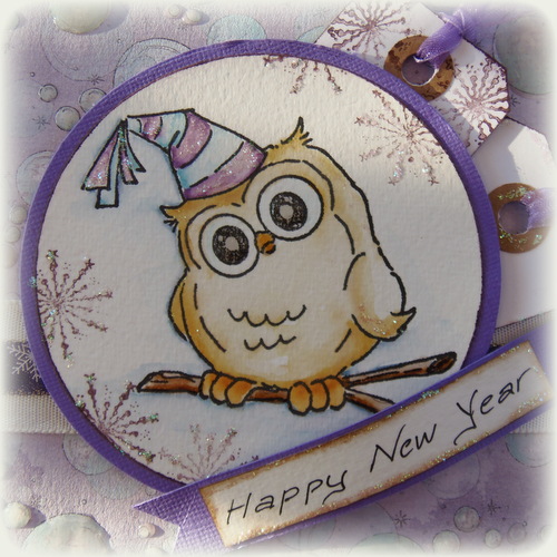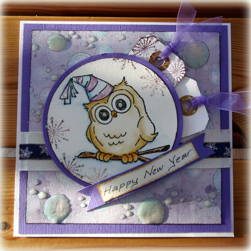 The kraft card base is 5-1/2" x 5-1/2". I chose some cute designer paper from Basic Grey called Marrakech (an older 6" x 6" paper pad from my stash). Love the bright colors and designs in the papers. I matched my copic marker colors with the paper, and colored the stamped image in. I used Spellbinder dies to layer my colored image on. For some fun texture I ran some light blue designer paper through a Provo Craft Cuttlebug embossing folder. (They made me think of water bubbles.) I added some Hero Arts clear crystals, and sewed around the edges.