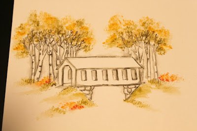Today, Karen is going to give a wonderful watercolor tutorial to kick of this release and our new Watercolor Stamping challenge! It's time for some wonderful new Ai Watercolor Mini sets! I was thrilled when I saw the Covered Bridge Mini set (Sku #4808) that I'm sharing today - it reminds me of New England... and there's no prettier time to drive around New England, than the fall. So I decided to share a fall painting with you. I started by stamping the covered bridge image, then stamped it again on a post-it note, and cut it out to create a mask that I placed on top of my artwork. The set includes this wonderful group of Birch trees, that I coloured with a Sepia marker and stamped partially over the left edge of the bridge mask. I inked up about 2/3 of the image again, and stamped it on the right edge. Now when I remove the mask, the trees appear to be behind the bridge: With the tiny leaves image, I inked up two different warm yellows and stamped repeatedly to start the foliage, then filled in with two shades of green. I used the small grass from the WC Foliage Set (Sku #4051) and the small daisies from the WC Flower Set (Sku #4052) in oranges to create some bright fall bushes. I softened everything with a wet paintbrush to pull the colour out. I added some brown to the roof, gave the building some purplish shadows, then painted in the water, sky and the suggestion of mountains in the distance. I added a few purplish shadows to the trees as well, especially up near the leaves. And there's my fall scene! Beautiful work, Karen! We love how delicately you watercolored with the Covered Bridge Set! We'd love to have you join in our new challenge! We want to see yo use all water-based inks for these projects! Have some watercolor fun!