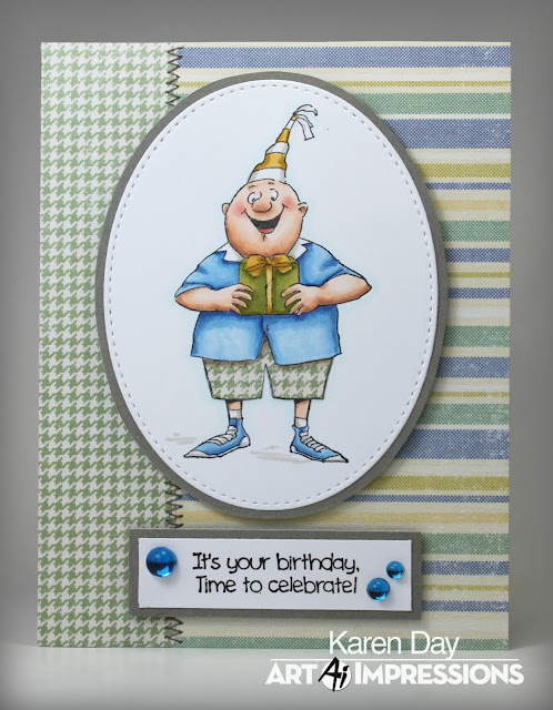 LOVE those papers and how you paper pieced him, Karen! Fantastic masculine cards!!