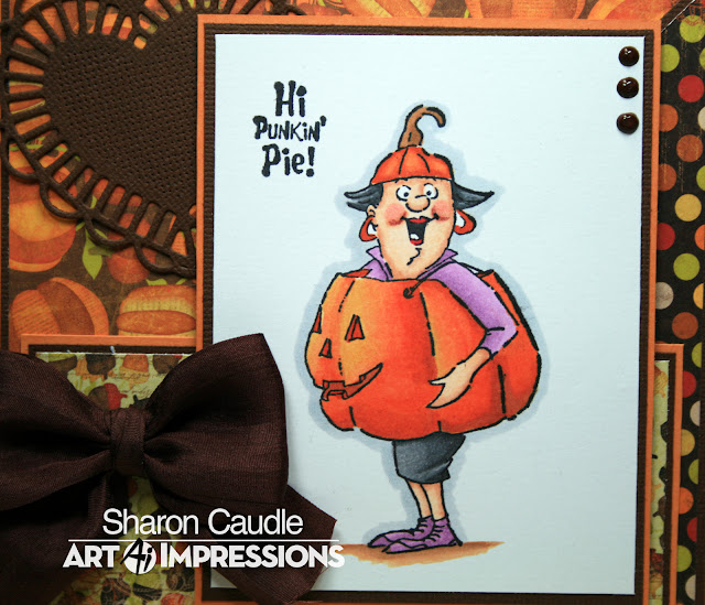 Can you believe it's almost time for Halloween?? Those little trick or treaters will be knocking on our doors very soon! Do you ever get adult trick or treaters as well? We do sometimes. And if I ever had this cutie show up at my door, I believe I'd have to fill her bag cause she's so adorable! She's 4520 Punkin' Pie Set from Art Impressions! :) Oh! I almost forgot to tell you!! I'm so excited cause I'm in Sacramento today at Scrapbook Expo, and I am taking a watercolor class from Art Impressions!!! If any of you are there, holler at me! I'm in the Saturday morning class and will be arriving late as a group of us are taking a bus over and don't arrive til around 8:30 and then we have to get checked in. Hope to see you there!!!
