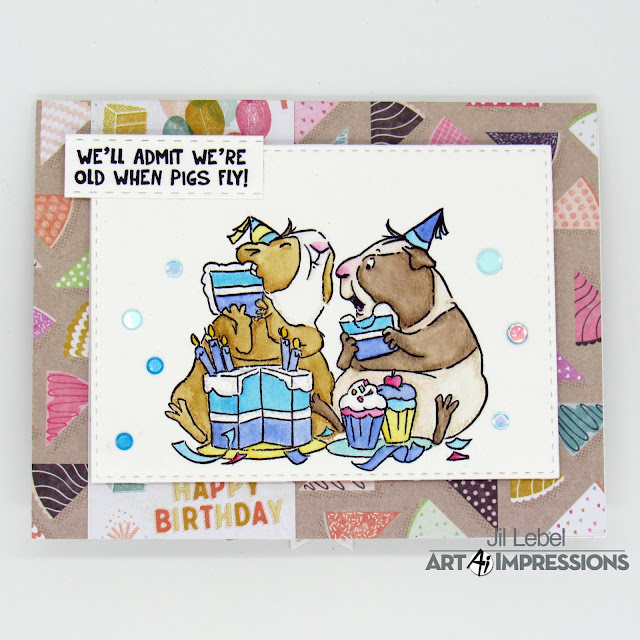 My brother is turning 50 this year so his card couldn't be very serious. It had to be super fun and silly. I had the perfect Art Impressions stamps for his card. I used the Guinea Pig Out Set along with the Pig Flutter Set to make a fun birthday card that I think he'll enjoy.