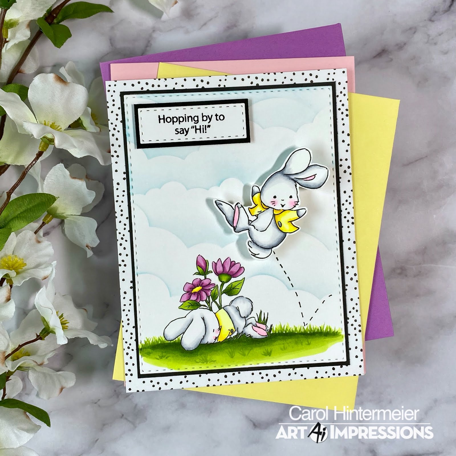 Happy Monday Ai friends! I am sure hoping you all are well and adjusting to our current "normal". I hope my card for today using the new Art Impressions Easter Bunnies set will bring you a smile and some cheer. This is an adorable set that has several images so you can use it for many more occasions other than Easter! Also, as I write this post, this is one of the new release sets that are on sale! Be sure to check out the new release 20% off sale and the up to 30% off sale of so many other awesome sets!