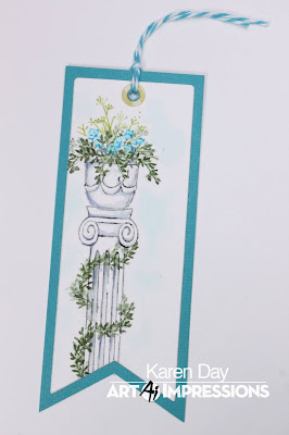 Have you seen the brand new Bible Journaling stamps from Art Impressions? I made this card with the 5270 - Columns Set. I LOVE all four stamps included in the set and know I will be using them often. Bonnie Krebs, owner/creator of Art Impressions gave me the idea to add the flower pots to the light pole.