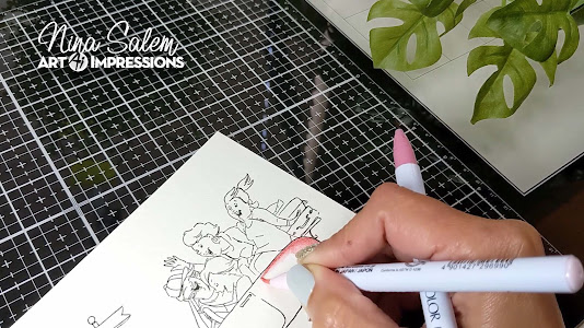 I stamped the girls image on Bristol smooth paper with watercolor friendly ink and colored it using my Zig Brush Markers.