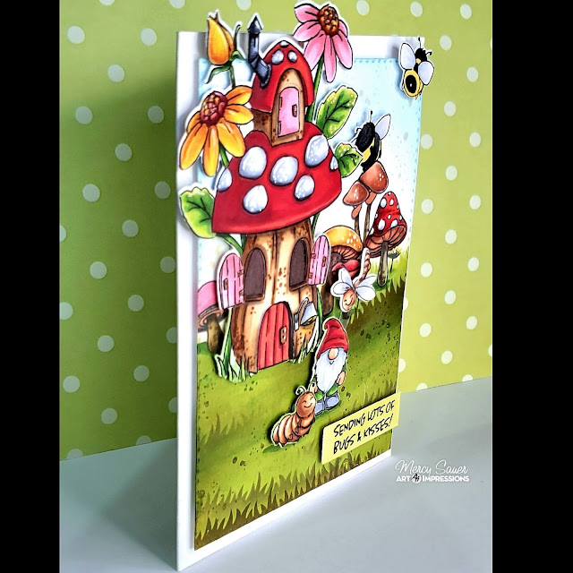Hello folks, this is Mercy, welcome back to our Blog. Today I have an extra special card. I absolutely love this Mushroom Cubbies stamp and die set. Some folks love Ai for their watercolors; however, I love their critters the most. The artwork is the perfect combination of mystical, cute and fun critters that will guarantee a smile from even the most critical recipient.