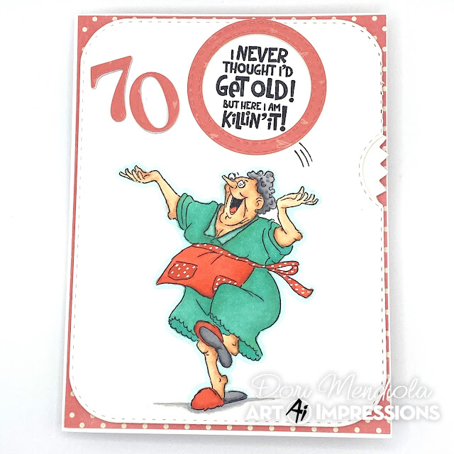 Today I have a humorous birthday card for the "Milestones" challenge using the #5279 Be Happy Laugh Lines set.  If you haven't checked out these Laugh Lines sets yet, make sure you go to the website and check them out.  Bonnie hit the mark on these.  The sayings are perfect as well as the images!