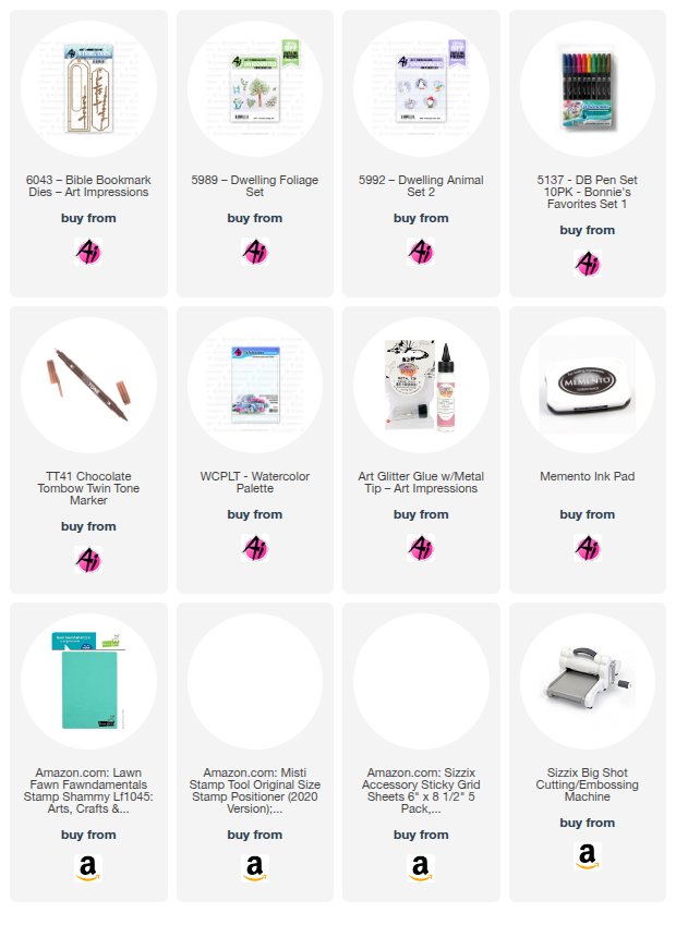 The bookmark is created using the 6043 - Bible Bookmark Dies. The set includes three scripty words of faith and I chose to use Jesus on the bookmark. There are many pieces in the set so you can use your own creativity to give these your perfect touch. At the bottom of mine, I stamped the bird from the 5992 - Dwelling Animal Set 2 and the tree is from 5989 - Dwelling Foliage Set. The stamps in the Dwelling sets are so perfect as little accents and their size makes them simple to paint using Tombow markers, water and a brush.