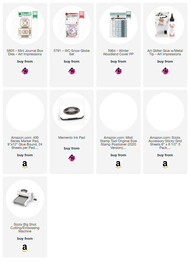 Hello Ai Fans. Today I have a mini-journal box with a small twist. As I was looking at the 5805 - Mini Journal Template Box Set, inspiration hit me. I wondered if I could fit a 5808 - Snow Blob Shaker Dome on it and yes, it does fit if you carefully center the circle that the done fits into! I had to trim a tiny bit off of the flat part of the dome on the edges to make it fit but it does work and I am pretty pleased with that! It makes this little box extra special.