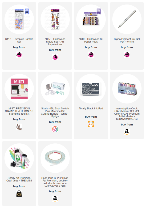 Tasha here sharing a new Halloween card inspired by the current Art Impressions “Along Came a Spider” Challenge. For my card, I used the 6112-Pumpkin Parade Set to create a fun Halloween scene. I stamped the little bunny witch character and colored her with Copic Markers.