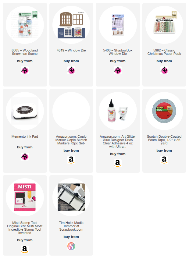 I have a cute little snowman card for you today using the #6085 - Woodland Snowman Scene stamp set.  The stamp sets in this series fit nicely within the #4619 - Window die.  A great way to highlight the scene and add a touch of interactive to your card.