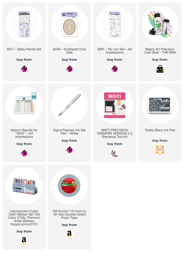 The adorable little bear comes from the 6017-Baby Panda Set, and it fits perfectly in the playful scene. The floral frame was created using stamps from the 5981-My Joy Set, which adds such a fun and sunny touch around frame.