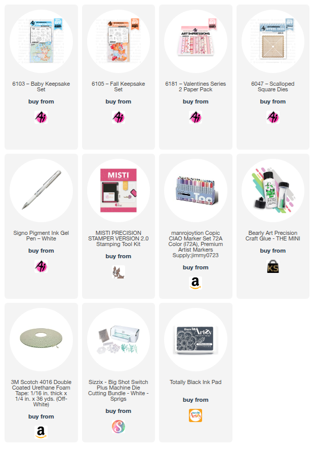 The charming little basket and the sentiment “Sweet as Can Be” come from the 6103-Baby Keepsake Set, and honestly… can you ever have too many hearts? I think not!
