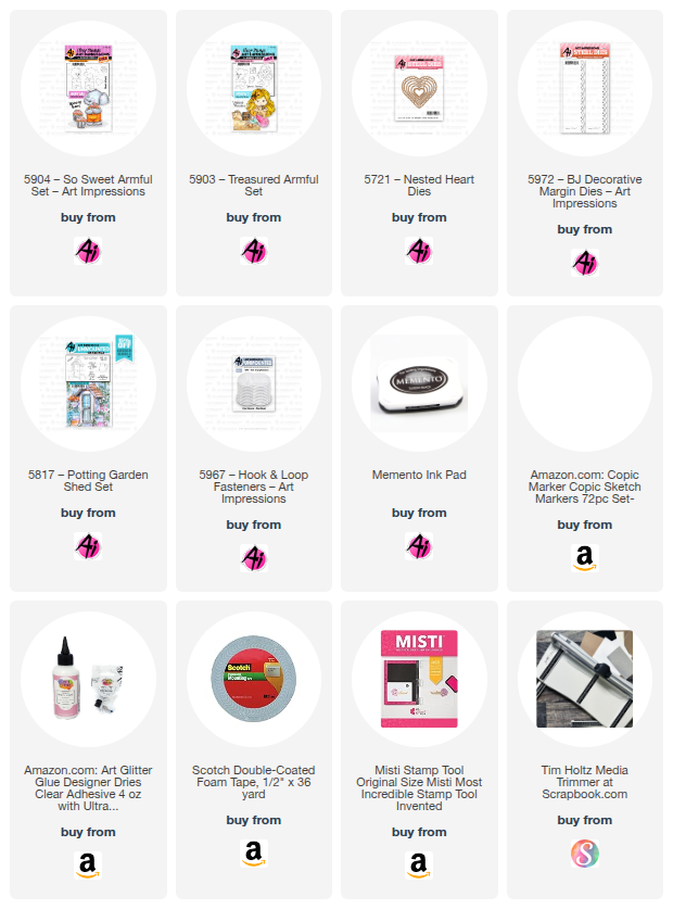 For the images, I used the Armful stamp sets - #5903 Treasured Armful and #5904 - So Sweet Armful.  The arms of each animal have a slit cut to allow you to slip a cute little heart, flower, star, etc.  These sets also include the corresponding dies.
