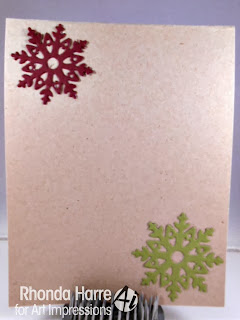 I stamped my snowman and coloured him with Copic markers, then cut around him, leaving about 1 1/4" of paper at the bottom, with a score mark 3/8" up. I also stamped a couple of trees in the same fashion to use as a background. Both pieces were glittered up. I also made a little brace which you'll see in the following photos, which helped hold the pieces upright.