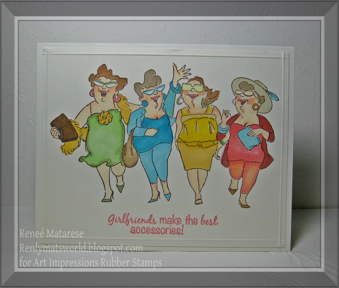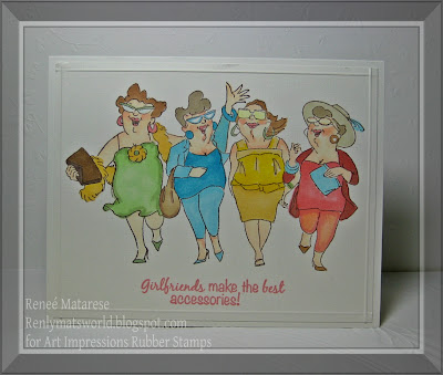 Today I have yet another card going into my Sister-in-laws gift basket. This one features an image and verse from the Uptown Girls set from Art Impressions. I know she's going to love this card in particular because there are 3 womenthat she's particularly close to and the 4 of them are nearly inseparable. Here's to you Lori, Christy, Jen and Carla!!