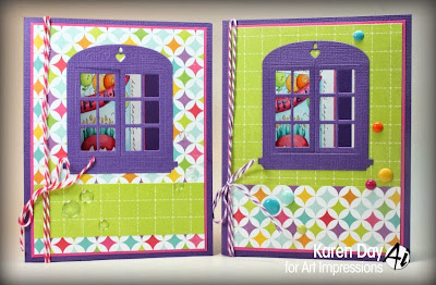 A few weeks ago, Art Impressions released a whole bunch of brand new Windows to the World stamps (you can see them all here!). Today I'm sharing two cards made with one of the original Windows stamps Birthday Banner Window (Sku #3198), and using the brand new Window Die (Sku #4619):