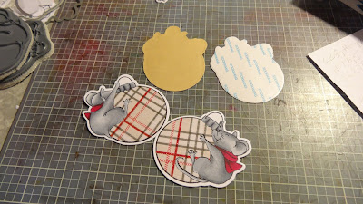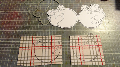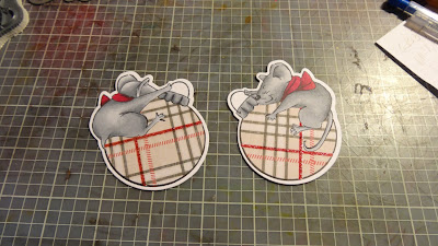 I also love to use up small scraps of patterned paper by paper piecing the Ai character's clothing. I decided to make 4 cards so I've stamped and cut out the elephant's dress 4 times. I matched the hexagon patterned dresses with the hexagon shaped card, and the same with the florals!