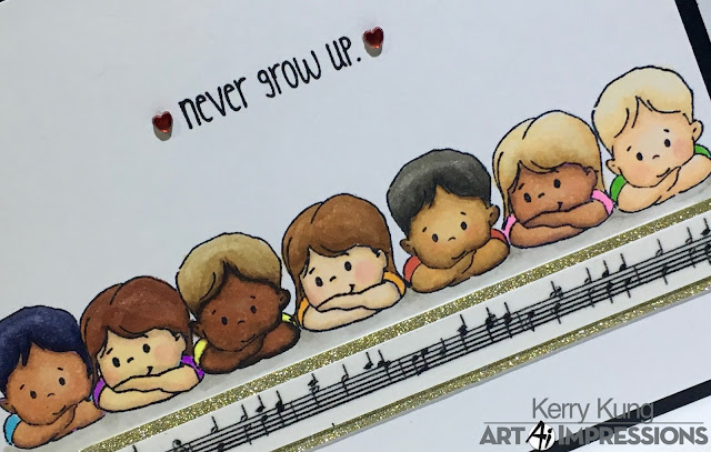 I had fun die cutting a little circle frame for the girl from the foam adhesive. I also cut the sentiment die from the foam and applied the gold foil to both. For a few accents, I adhered some tiny glue dots and more gold foil!