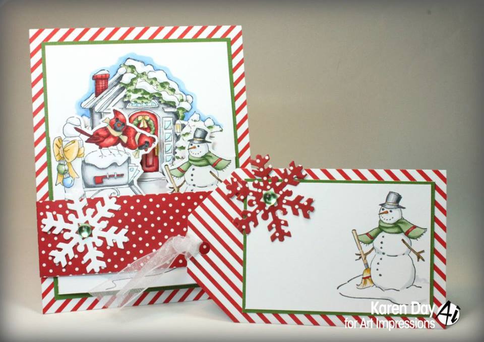 Way to go, you two! Agnieszka, we love your red and green card with a vintage vibe with Reindeer Games. Really pretty coloring, too! Tami, way to be creative using the Christmas Scene TF for a lovely shaker card. Be sure to email annelise@artimpressions.com with your address and the stamp set of your choice!