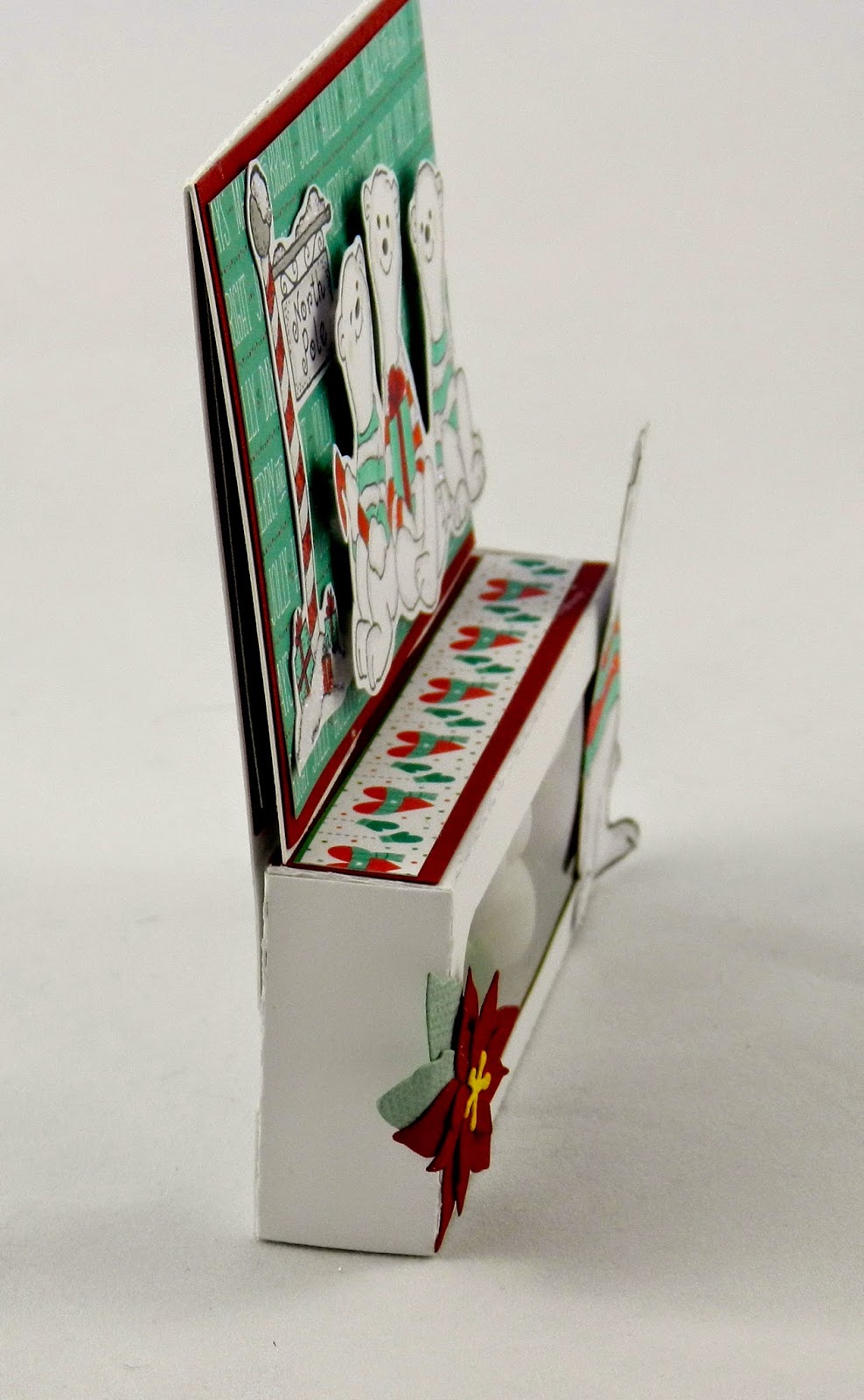 Then I cut two white stripes and stamped the sentiment in black ink. I added it to the card with foam tape, along with the images. Last I added a few matching dots.