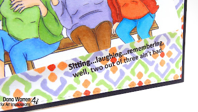After coloring and adding the piecing I fussy cut out both ladies. I kept a bit of white around each image. Next, I cut the wave pattern paper with a stitched rectangle and added them each to a white card base.