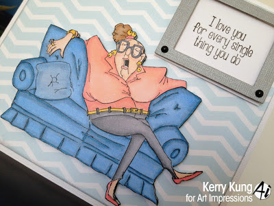 So how about a funny card today that you could use for any occasion? I love the Golden Oldies at Art Impressions! This one is Lovelle on Couch, and she could be saying anything! I've always loved this sentiment G2621 Childproofed. I think it's so funny!! I paper pieced the couch and pillow.