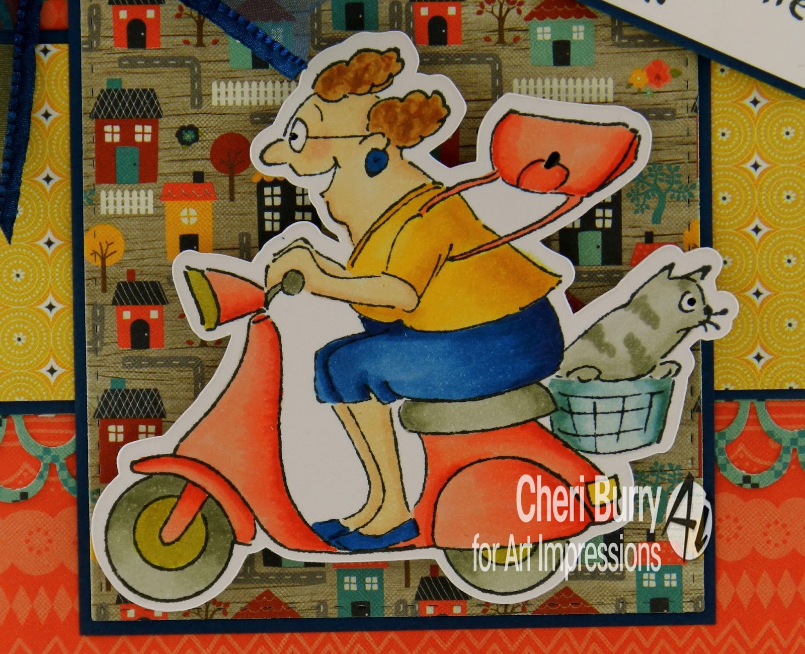Hope you're having an amazing start to your weekend! I don't know about your weather, but we are H*O*T!!! It's been in the 100's pretty much all week, and it's going to be there again next week. WHEW! My card today features T4090 Mad Rider along with G2630 Cleverly Disguised sentiment. Looks to me like she's catching a nice cool breeze cruising on her Moped! I've always thought it would be so cool to have a Moped! How about you? Do you have one?