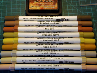 To start my cards, I always pick the stamp first, and then go with some paper that I think matches the feeling I'm trying to portray with the card. I usually pick two or three matching papers so I can create my different layers. Then I get ready and start coloring the stamp to match the colors in the papers. As you can see, I didn't just limit myself to only the colors in the papers I simply picked some coordinating colors and tones and had fun with it.