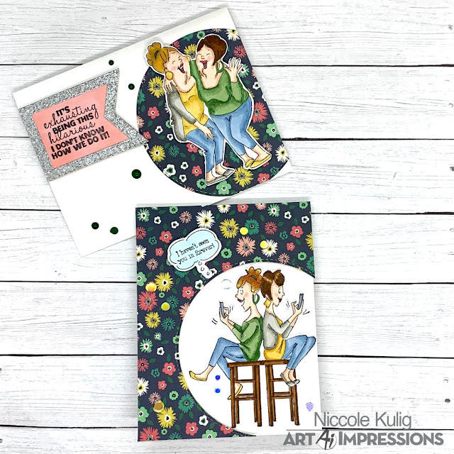 I added my circle to my base card. I colored my ladies and raised them up with foam tape.