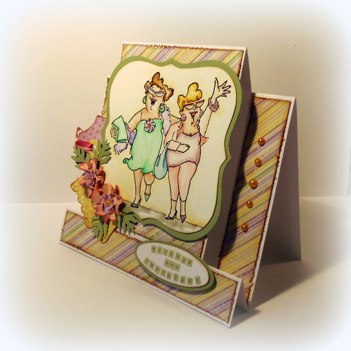 I did a quick video while coloring the Flamingo and water. Unfortunately, I've been having some computer/camera problems while recording, and it cut out before I could finish. But, you'll be able to see the colors I used, and the process. Also how simple it is to use FlexMarkers. When you buy the sentiment it does come whole. As in, "bad day in progress... stand clear" as one stamp. However, to get the words to stamp around the Flamingo as such, I had to cut them apart. It wasn't too difficult, but, I do suggest if you are going to cut them apart, make sure you have a good pair of scissors!