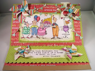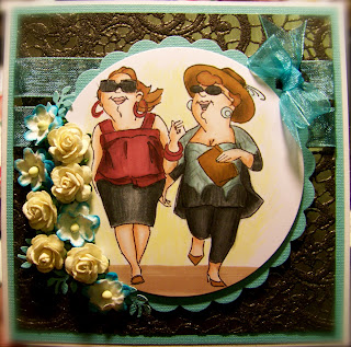 Today I like to show one card I made for a birthday card. This lady has her 50 year birthday some time ago. I have used a stamp called "Uptown Girls". As you noticed, I used just one lady from the stamp.
