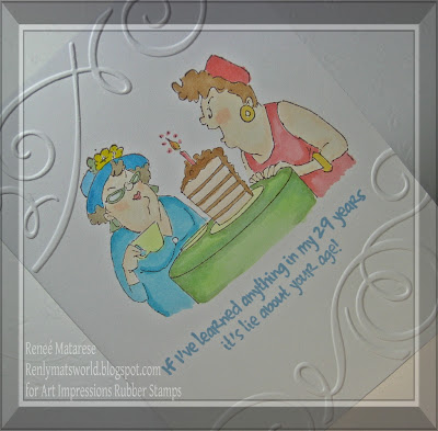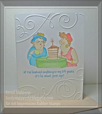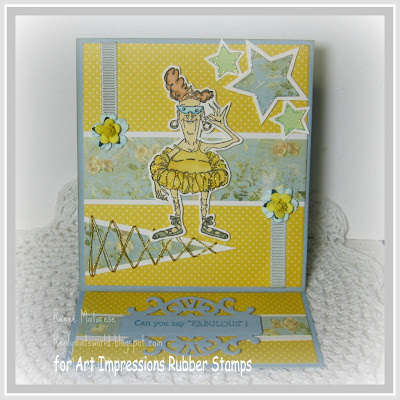 I am so proud to make a card for Independence Day , this card was made in honor for all who have fought for our Freedom and for those who continue to fight for this wonderful country we live in . I am proud to say my dad was a Marine who served 27 years for his country ,I know what its like to live without a loved family member who has been called to duty to protect our great country. God Bless America and this is the theme I chose to create my card. I was flipping thru my stash of stamps and came across Betty , here she sits pounding out a tune on the old ivories , and today she will serenade us with her rendition of God Bless America , can't you hear her belting it out , Art Impressions has such great stamps they are stories awaiting to be told.