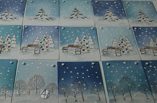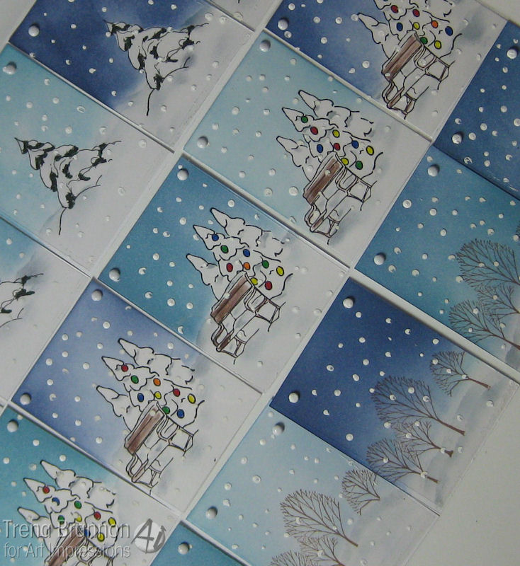 For the snow, I made random dots all over the transparencies with the acrylic paint - I just dabbed the small trip directly to the transparency sheets.